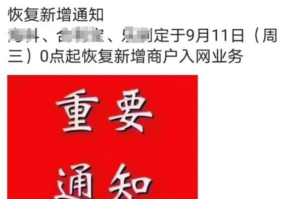 另外,網傳還有3家支付公司,將于9月11日恢復新增商戶。
