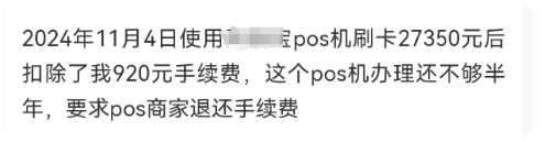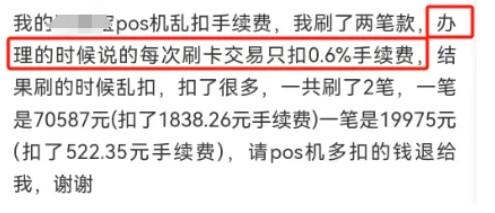 用戶在使用機器的時候,要注意刷小額的測試一下費率,費率不高的再刷大額。一次性刷大幾萬的,手續(xù)費可能就扣你一兩千。