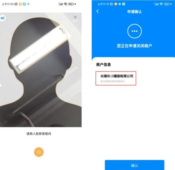 ①按頁面提示要求進行人臉身份識別,人臉認(rèn)證通過后進行商戶號的二次確認(rèn)