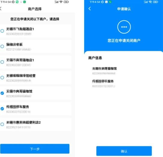 ②如需關(guān)閉多個商戶,會先展示商戶列表頁面,您可自行選擇需要關(guān)閉的商戶號。