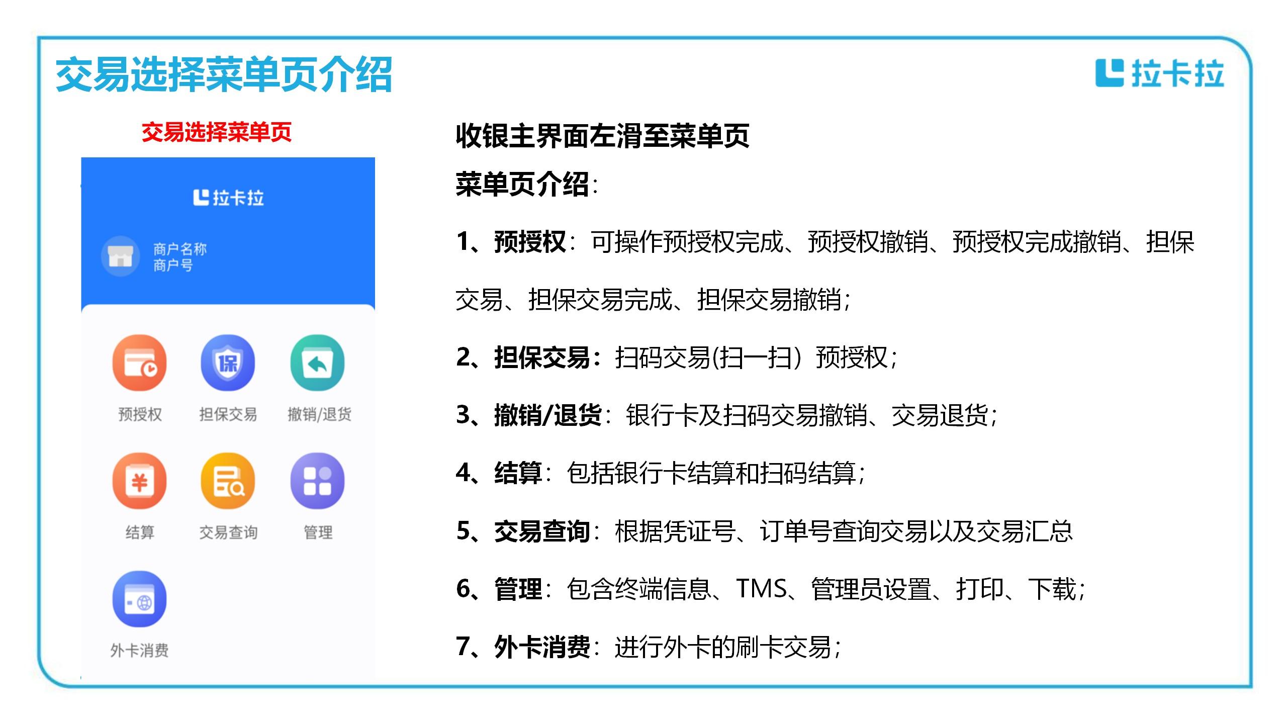 3、撤銷/退貨:銀行卡及掃碼交易撤銷、交易退貨;